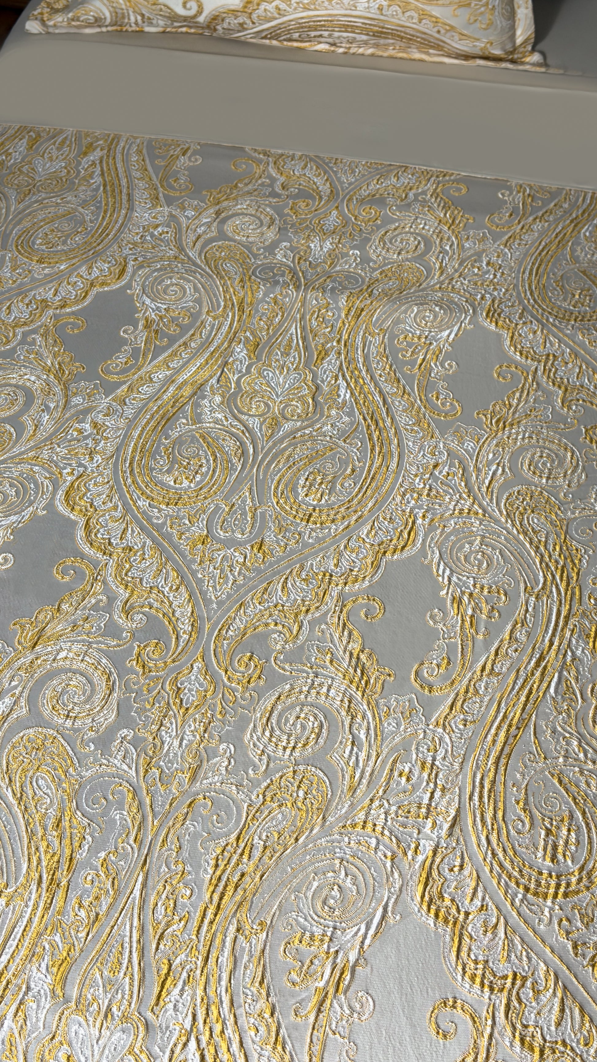 Această lenjerie de pat premium se remarcă prin eleganța discretă a broderiei realizate cu ață, nu prin print, oferind un aspect rafinat și o senzație plăcută la atingere. Materialul satinat cu inserție de bumbac combină luciul delicat cu confortul natural, fiind ideal pentru un dormitor sofisticat.